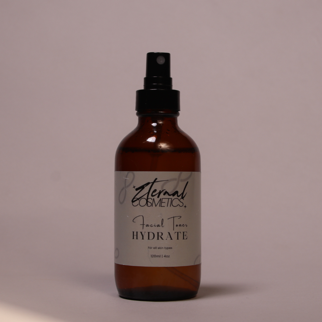 This "Hydrate" Facial Toner effectively hydrates and refreshes while minimizing pores. Its convenient amber glass mist spray bottle makes it easy to apply.